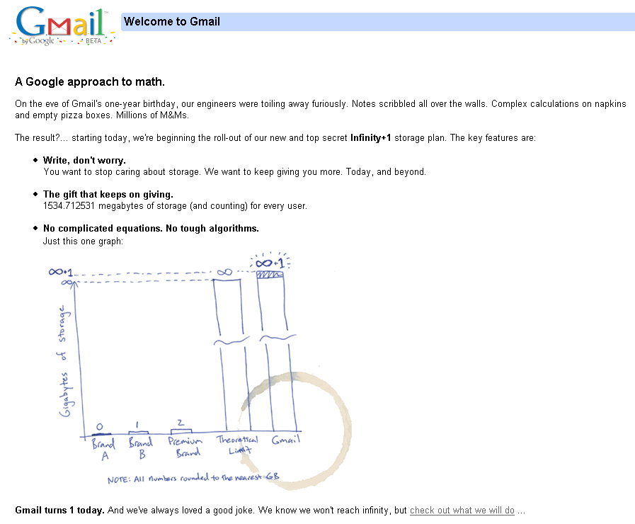 Okay the infinity part is just an April Fool's joke, but they are really going up to 2 GB's and beyond.